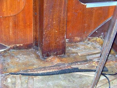 je suis un peu dans la mouise, je voudrais démonter le pied de mat afin de changer la pièce en bois qui est entre le pied de mat et l'épontille. J'ai pu défaire 1 vis, les autres tournent folles, il me semble qu'il faudrait les atteindre par en dessous derrière le cache en bois de l'épontille comment faire pour le démonter et les atteindre?