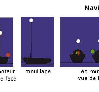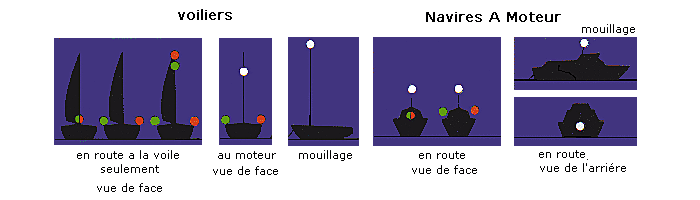 En route, sous voiles, pas de souci : feu bicolore en proue + feu blanc en poupe.