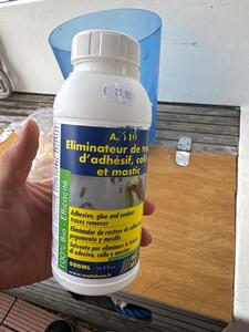 Le produit que je t'ai proposé est fait exprès pour les bateaux, et l'environnement marin. Tu appliques avec une éponge et la colle se dissoud dans la foulée. J'ai essayé d'autre chose avant, mais rien n'y faisait !