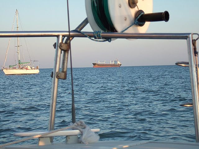 Une ligne de traine environ 40 metres (garcette + leure non plombé) attaché au balcon arriere.