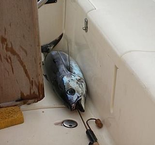 par contre, si dans l'eau, les petits thonidés ne se débattent pas, c'est pas la même musique dans le cockpit à l'inverse des daurades, qui elles se débattent bien dans l'eau, mais font plutot la planche une fois à bord
