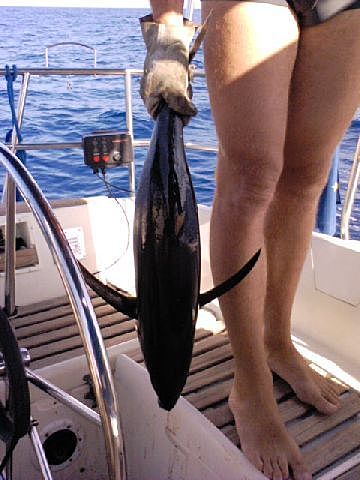 bah heu regarde la magnifique dorade ou encore l'espadon dans les precedentes contributions et tu veras que si si il est possible de prendre du (tres) gros sur un voilier et sans canne même si c'est surement moins aisé que sur un canot à moteur tout equipé de matos specialisé.