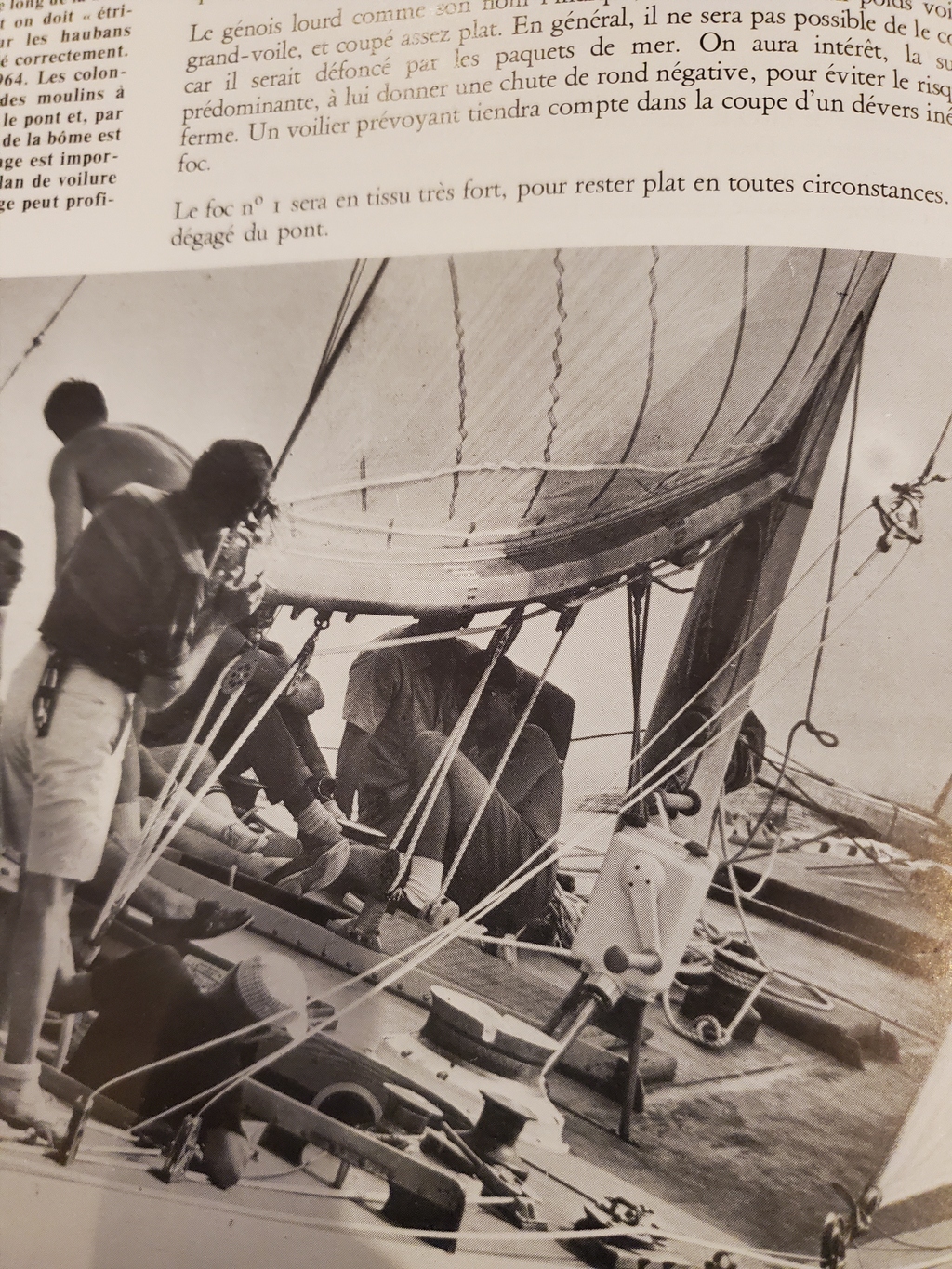 gorlann29:Pas tout-à-fait Addiction: sur certains classe J, ils utilisaient ce qu' ils appelaient une "bôme canoë". Cette dernière ne se cintrait pas mais était muni de plein de petits rails transversaux munis de chariots avec des butées au vent et sous le vent qui leur permettaient de modifier à souhait le creux de la GV dans le bas selon les conditions. Çà coûtait une blinde et cassait souvent!·le 10 déc. 09:49