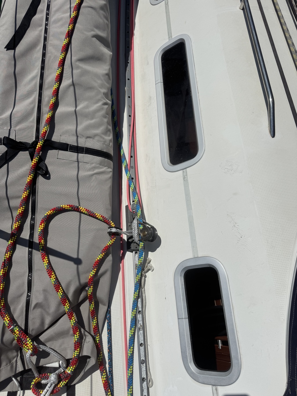 Je vais donc vérifier aussi la fixation des anneaux de ris sur le vit de mulet :-)