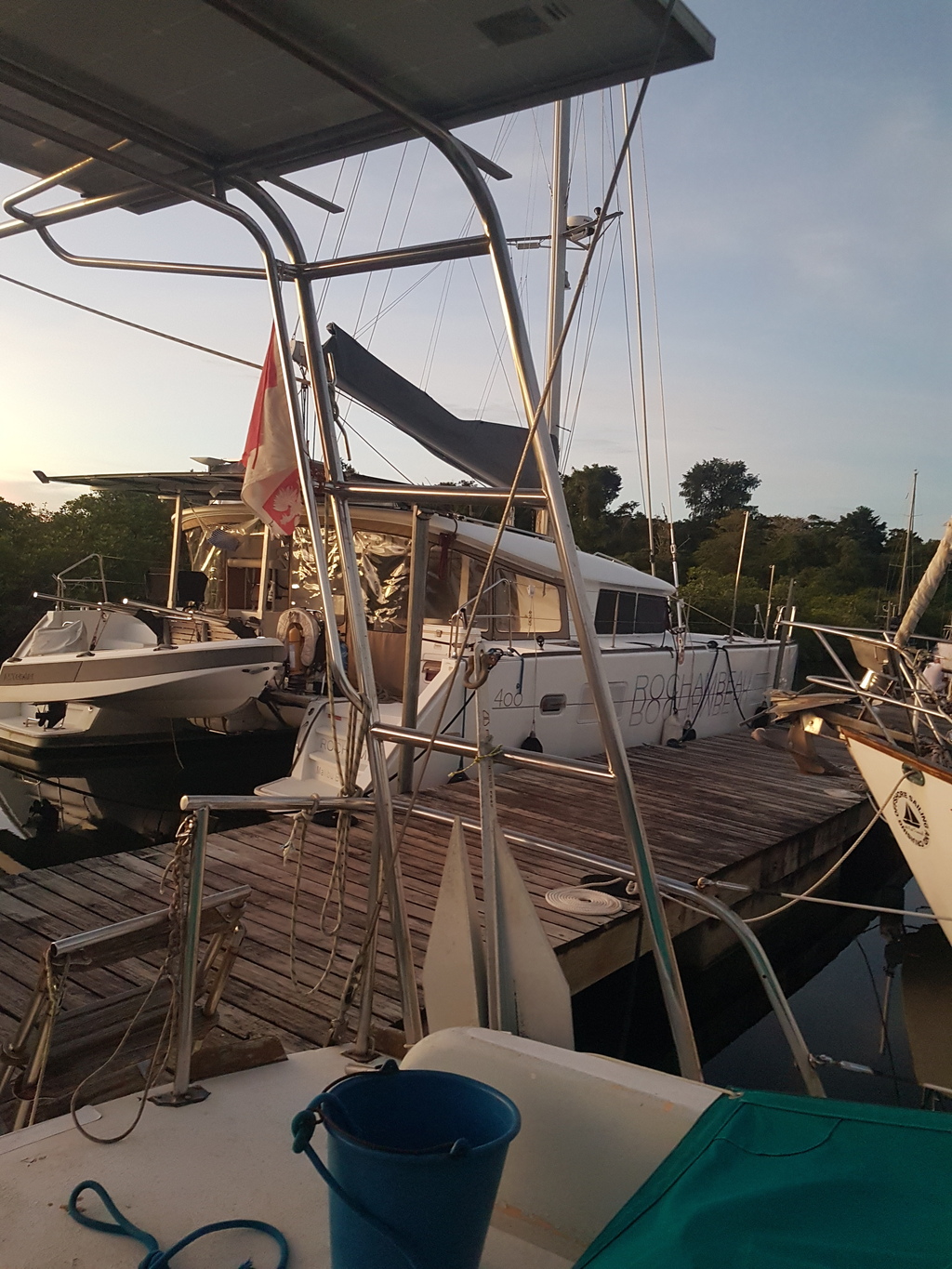 Pour le comment, et bien je pensais pas que ça tapait autant à l’arrière dans les écluses, sic Panama qui m’attend. Les hauts quais en béton et les manœuvres impromptues…