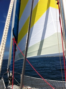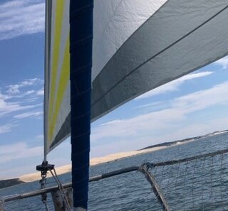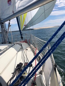 Notamment avec le Jouët 760 les descentes depuis le bassin d'Arcachon sur Capbreton ou Hendaye nous ont systématiquement évité, grâce au gennaker, l'utilisation du moteur.