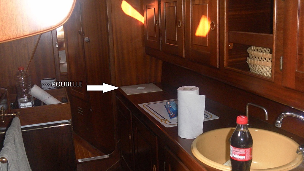 Deux poubelles effectivement à bord : la petite, journalière sous la table du carré,