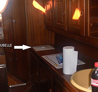 sur mes deux derniers bateaux, la poubelle est sous la table du carré, face à l'arrière.