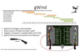 Comme alternative j'avais prévu de le remplacer par un nouveau modèle Garmin GWind + adaptateur. On peut le connecter sur le serveur Nexus NX2 comme indiqué dans le schéma.