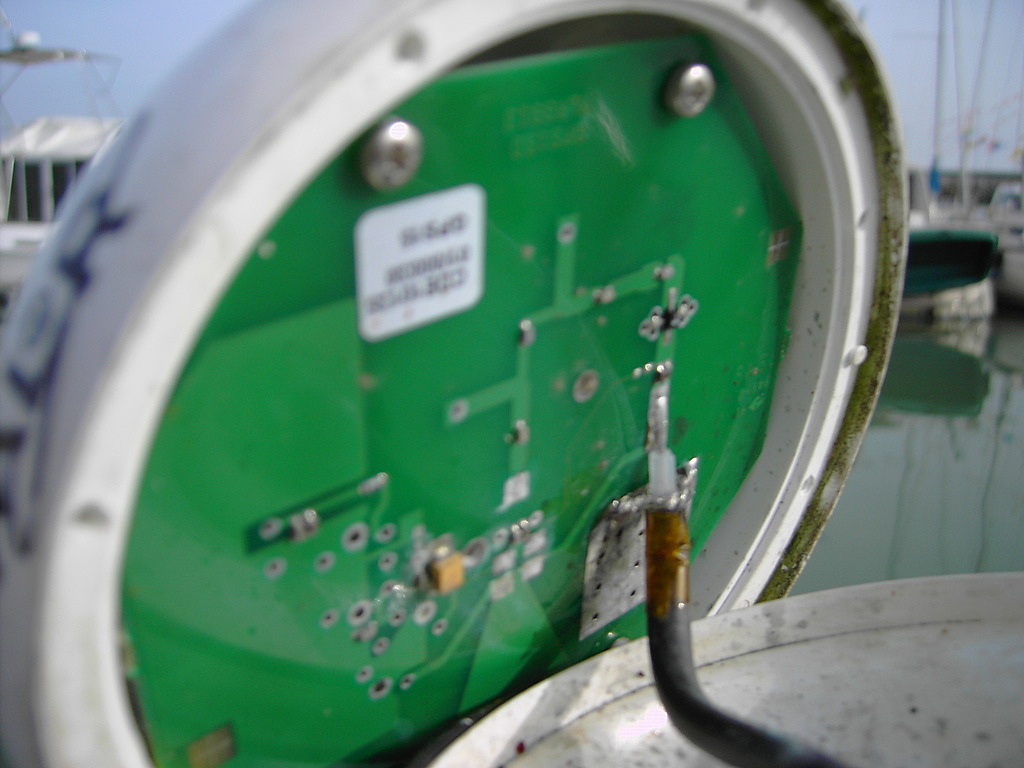 Le mien a aussi donné des signes alarmants de ce type. J'ai ouvert l'antenne et trouvé de l'eau à l'intérieur ( environ un 1/2 verre) . Cette eau ne pouvait pas s'évacuer à cause du presse-étoupe du câble. Selon les mouvements et la gite du bateau son niveau était au dessus de la carte électronique.