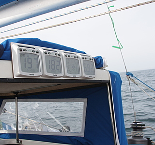 J'ai acheté en 2015 un Corsair F 24 avec du matos Tacktick, anémo/girouette, loch/speedo, sondeur. Age inconnu, sûrement plus de 5 ans, au pif vu l'état du plastique de la girouette. Rien n'était branché, sauf ce qui marche au solaire. Après vérif à la maison (sondeur dans un jerrycan) tout semble marcher. Après une demi journée au soleil, les batteries semblent tenir le coup (pas vérif éclairage)