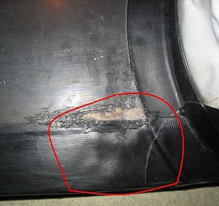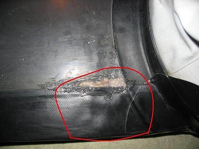 La zone entourée en rouge est la partie du bois qui est pourri, donc il est pourrri au fond (la partie qui est collée à la toile) et sur le coté ( la partie qui rentre dans le truc en plastique dur qui est collé sur le boudin) même mal expliqué j'espère que vous avez compris...