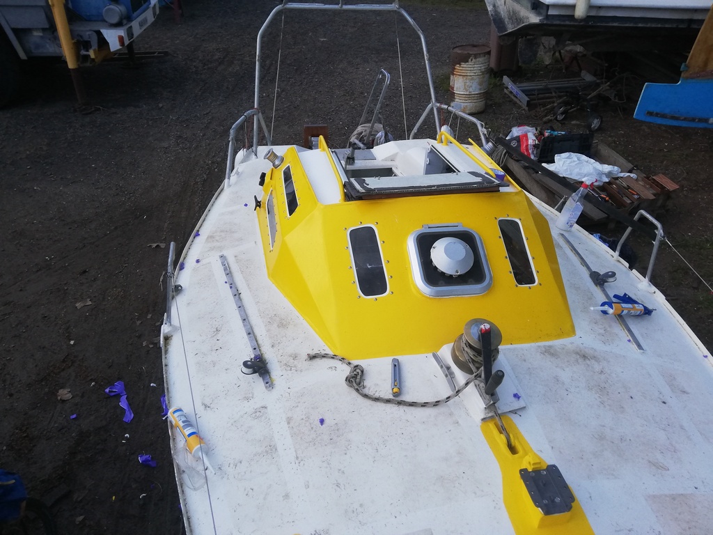 Merci François. Les photos sont "parlantes"...Je m'en inspire. Leguen Hemidy aurait dû le proposer avec ce petit roof, avec un ballast en accordance, je suis sûr qu'il aurait eu plus de succès...Et cette jupette lui va bien aussi! Passage au skeg! Beaucoup de travail. Quel look! Super.