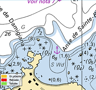 Informer ensuite le SHOM des mises à jour manquantes sur les cartes de détails. Passer par leur site internet pour regarder les dernières mises à jour.
