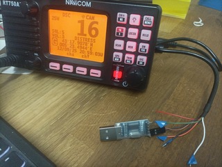 J'ai utilisé un multiplexeur de vela-navega (nmea4WIFI) relié à la vhf via le câble livré avec la vhf et à l'ordi par wifi. J'ai aussi branché le multiplexeur à l'ordi via usb (câble miniUSB/USB) pour l'alimenter.