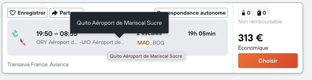 Je préfère éviter de faire un trajet Antilles > Colombie > Équateur en raison des problèmes de sécurité sur place.