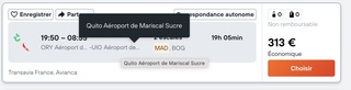Ensuite par Latam tu prends un vol pour Quito à 180€