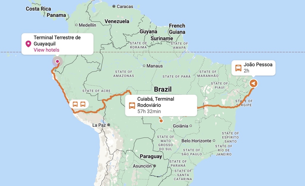 voilà ce que je propose après avoir consulté mon Fils qui habite au Brésil qu'il a traversé en long et en large en Bus.