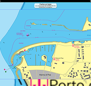 Pour l'entrée dans l'Arno avec 175cm de TE plus 20cm, mini, de pied de pilote que je prends toujours, l'Amirauté avait les yeux rivés sur le sondeur, et il n'y a eu aucun problème. Je n'y suis rentré qu'une fois, j'étais remonté jusqu'à la hauteur des premiers petits "chantiers" sur tribord.