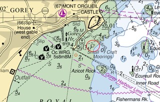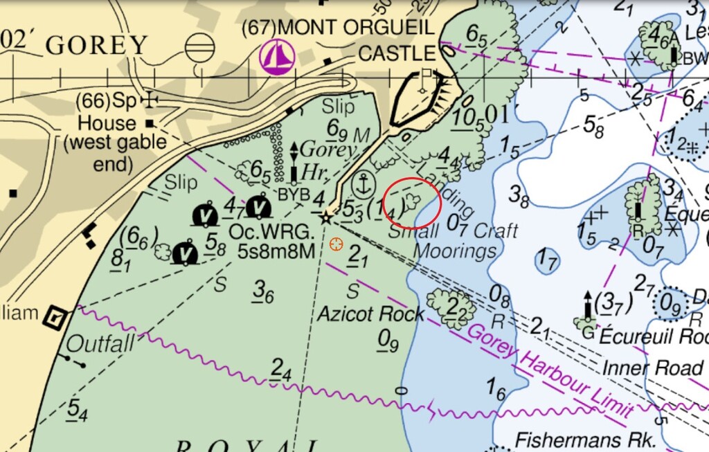 De Gorey c'est beaucoup plus rapide. Attention au caillou avant la jetée, il est n'est indiqué que par la carte, il est dans l'alignement pour les bouées visiteurs et il découvre.
