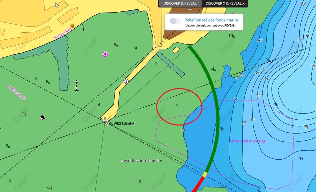 Pour les plus attentif, vous pourrait voir qu'il en est de même pour la bande rocheuse au nord de la cardinale quand on est dans le port. Et j'ai déjà vu des bateaux jeter l'ancre pas loin et obliger de leur signaler le danger.