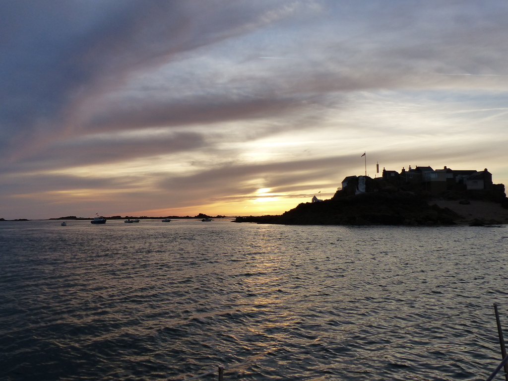 Ça ne serait pas plutôt un coucher de soleil? J'ai pratiqué ces eaux il y a bien longtemps mais avec 4m de tirant d'eau... de très loin!!! Il me semblait que les cailloux les plus hauts étaient au Sud... J'ai hâte de pouvoir croiser dans ces eaux magnifiques avec ma danseuse... qui, elle, heureusement ne tire qu'un mètre dérive relevée. Je prends note et vous remercie de ces précieux conseils.