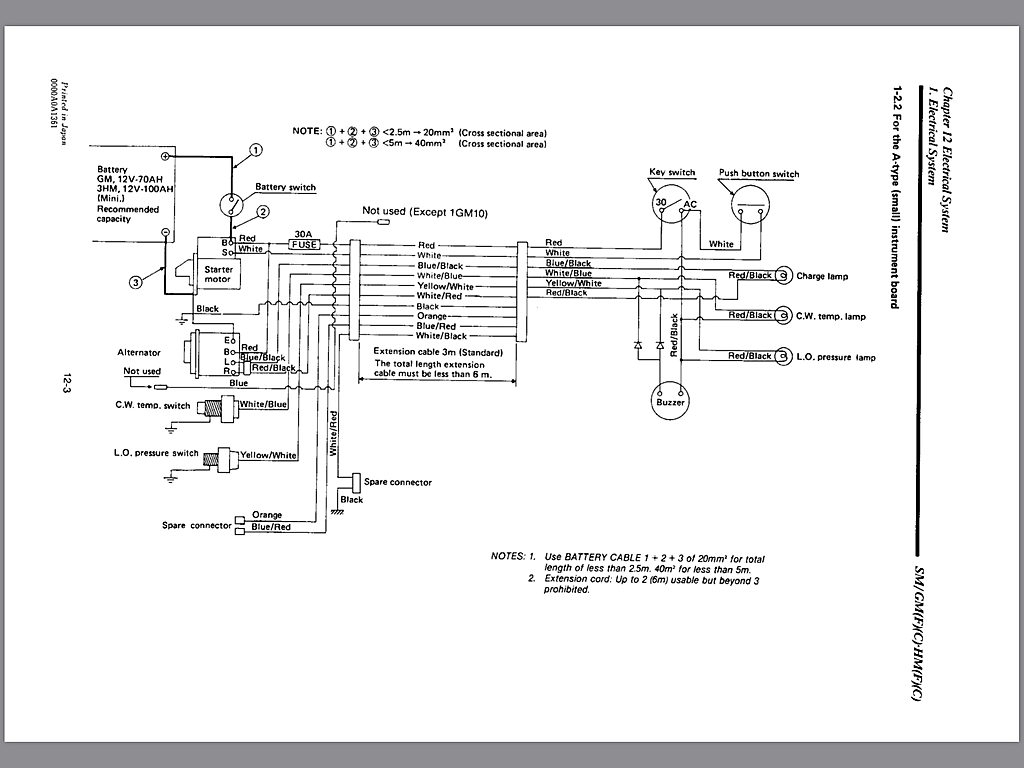 Aica a vu sur le circuit electrique des yanmar GM que l'alerte d'alternateur est uniquement le voyant rouge, non relié au buzzer, voir plus haut.