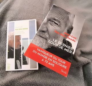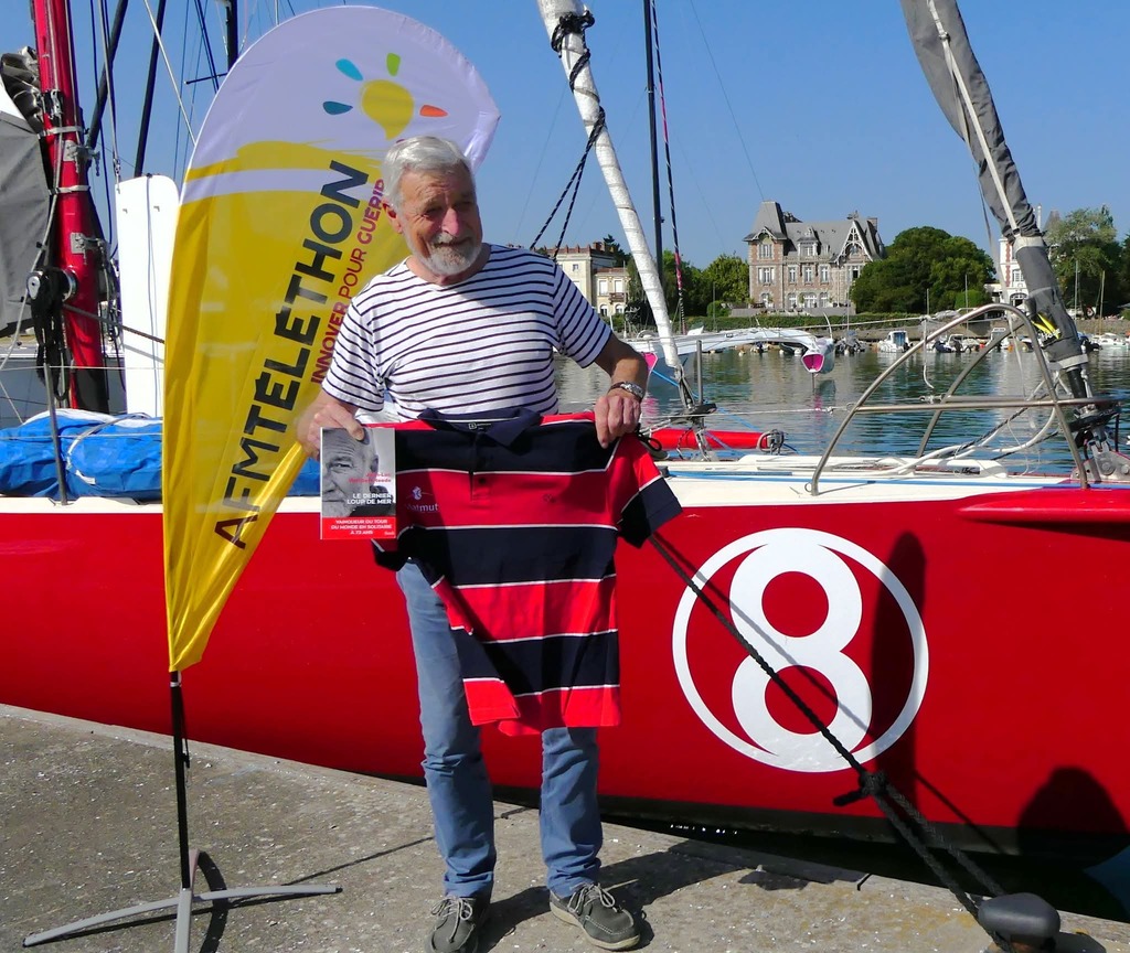 * Le polo Matmut de Jean Luc Van Den Heede pour sa victoire à la GGR 2019 et l'un de ses livres dédicacé