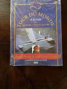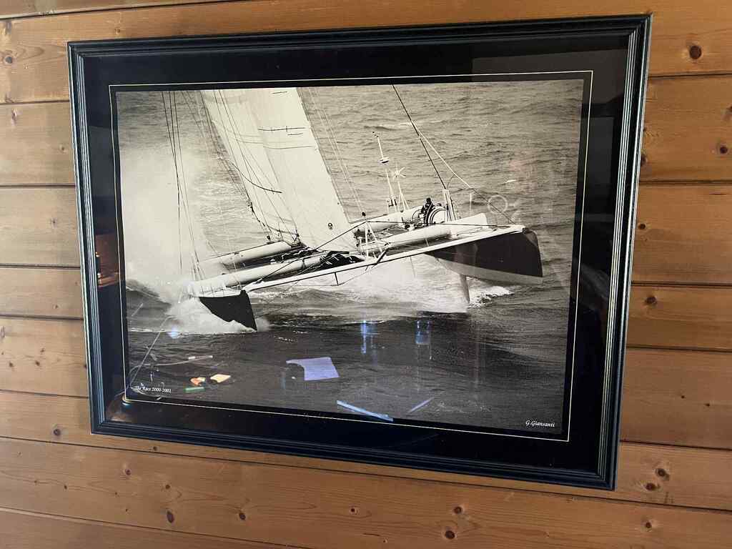 * Un livre et une affiche de Bruno Peyron lors de sa victoire au Trophée Jules Vernes sur Orange 2