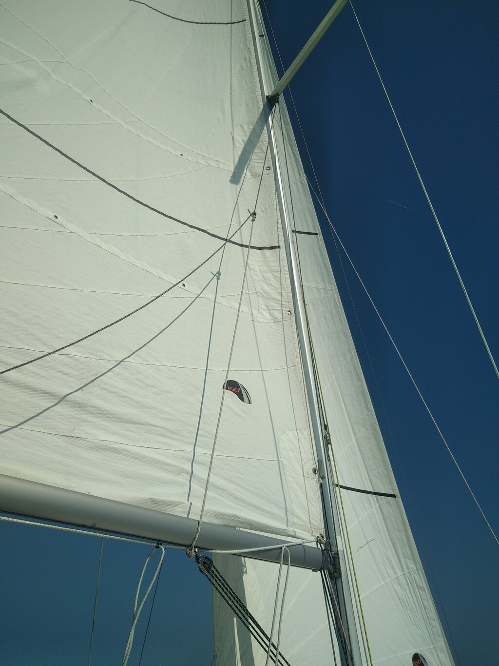 Avec un peu de paraffine sur la ralingue de temps en temps et un réa en bon état en tête de mat ça montait et descendait tout seul. Avec drisse ramenée au piano comme tout le reste. Aller manœuvreren pied de mat sur un micro c'est pas le top, on est bien mieux dans le cockpit.