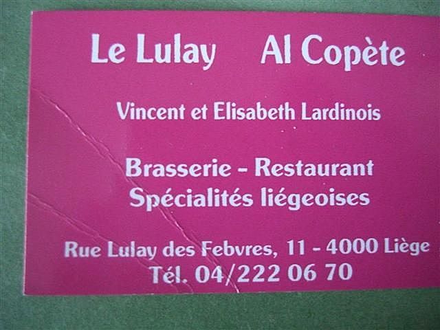 Par exemple : Resto "Au Lulay" ...Rue Lulay (dans le centre ville)