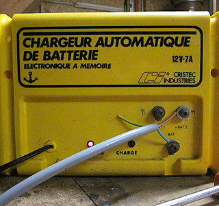 Je viens de découvrir que mon chargeur de batteries (Cristec 7A. de 1994 pour 2 batteries ) ne charge plus les batteries. Lorsque je teste les sorties, branchées sur batteries, en tension, j'obtiens 13.7V, mais aucune intensité. Pourriez vous m'éclairer ?