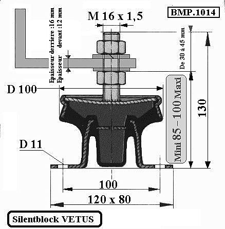 Tous les " **nouveaux" silentblocks sont trés souples(dureté en shore trés variable)ils se réglent en hauteur par la tige filetée. Tous ont des cotes de réglages, mini et maxi,par rapport à la base du silentblock.Donc avec ces silentblmocks ,plus besoin de cales a glisser comme entretoise.