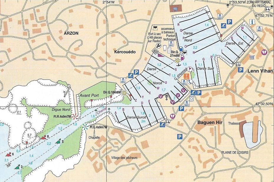 Parfois c est autre chose, exemple les moments ou on arrive au Crouesty dans ces interminables files indiennes et les bateaux d accueil qui courent a droite et gauche en attribuant des places, il y a un tres rapide ''place XYZ, catway babord/tribord'' et puis ils sont (justement) partis au bateau suivant. Si on s engage dans un couloir lateral et que ce n est pas le bon, bonjour le folklore pour en ressortir vers le canal central, comme essayer de traverser la A6 a pied un jour de depart en vacances. A Vannes -idem ou on trouve toujours une grande gentillesse- les nouvelles places passent une apres l autre 310 309 308 307... si on a la place 223 on s imagine qu elle soit encore tres en avant et bien non, apres la place 300 il n y a pas la 299 mais la 225-230 ou par la, encore une fois tous en file indienne si on rate son moment pour tourner soit on bloque tout le monde pour se mettre a faire ses acrobaties soit on doit aller faire demi tour devant la capitainerie.