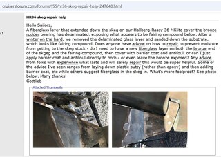 Et pur pinaillage technique de ma part, selon un forum HR, le HR36 semble présenter à la longue une fragilité structurelle du tissu au niveau de la jointure skeg/safran. En plus d'une implantation partielle du skeg en dehors de la "crashbox" du tube de jaumière. (photos 2 et 3). Donc, accessoirement, c'est la 2ème leçon, je rejoins l'avis de @Cowboy bebop sur la fiabilisation en catégorie A.