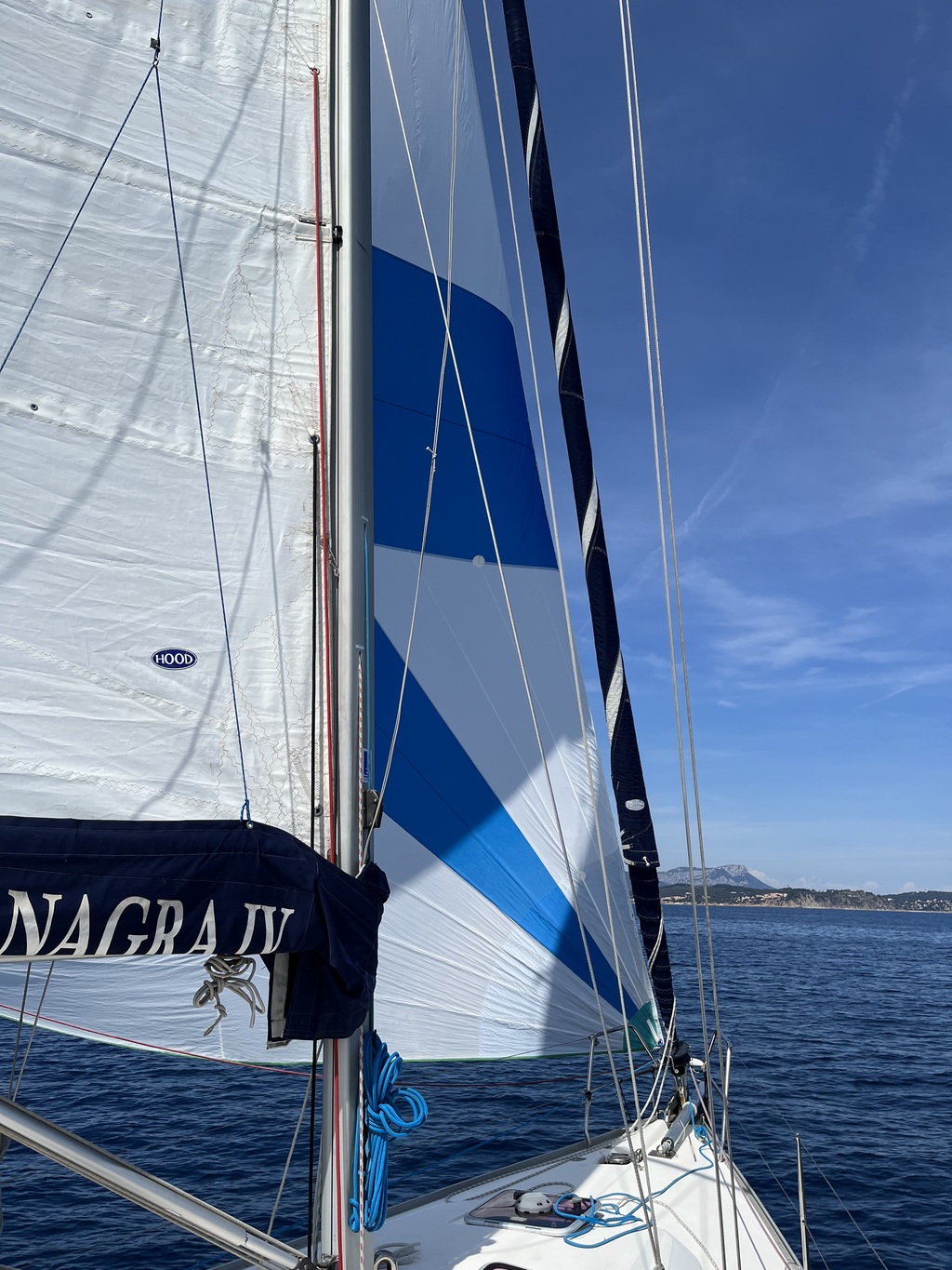 MacJL:En effet, ça doit mieux glisser avec ce système.Par contre, la bosse de ris passe encore de part et d’autre de la voile, ce qui frotte beaucoup quand on prends un ris, car forcément la partie basse affalée de la GV le laisse pas la bosse passer librement vers le Rea de la bôme.·le 07 déc. 20:36