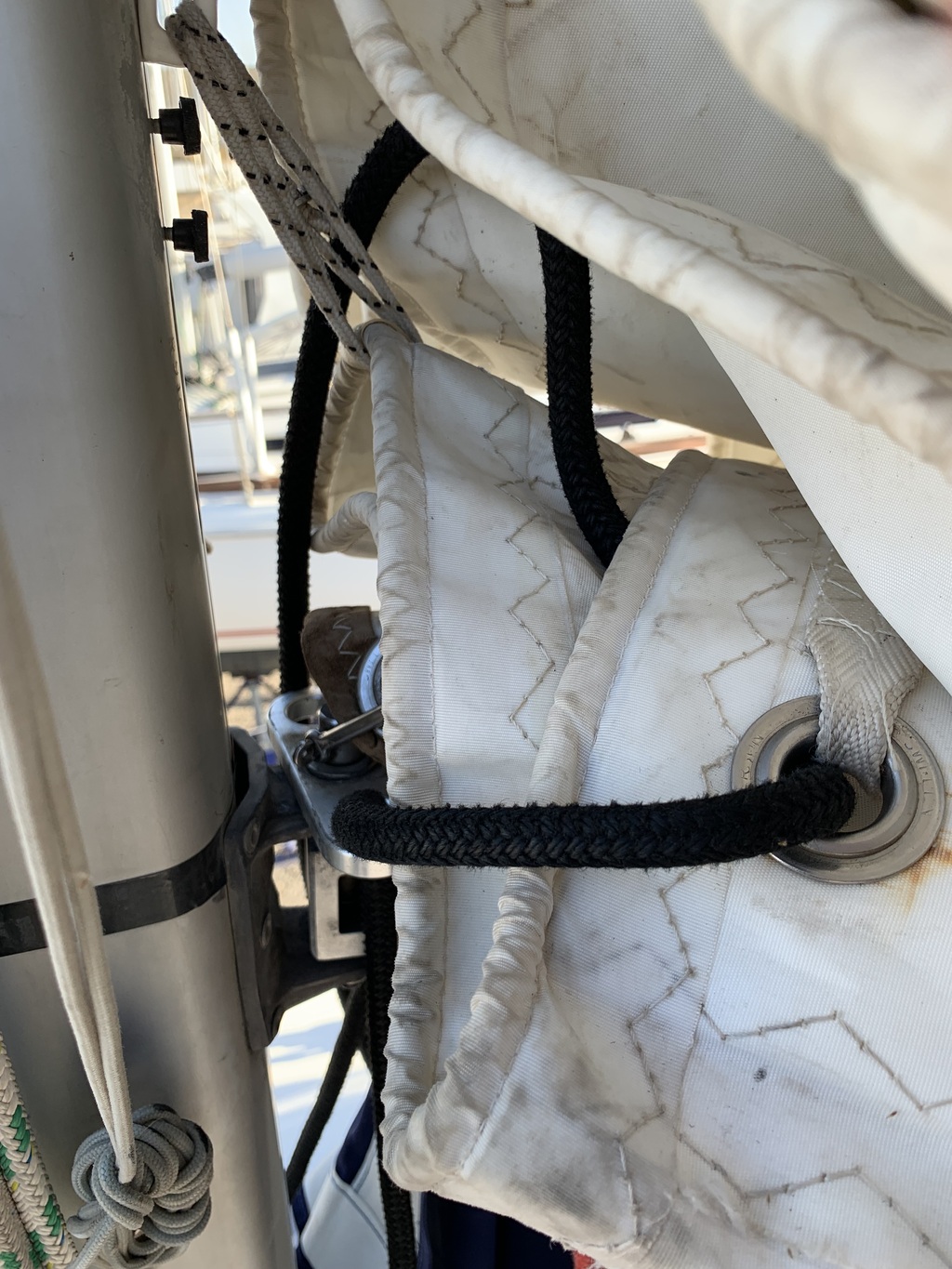 Je souhaite donc ajouter une petite poulie ou un anneau à friction au niveau de cet œillet de ris.
