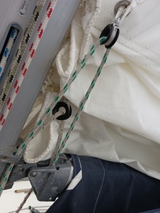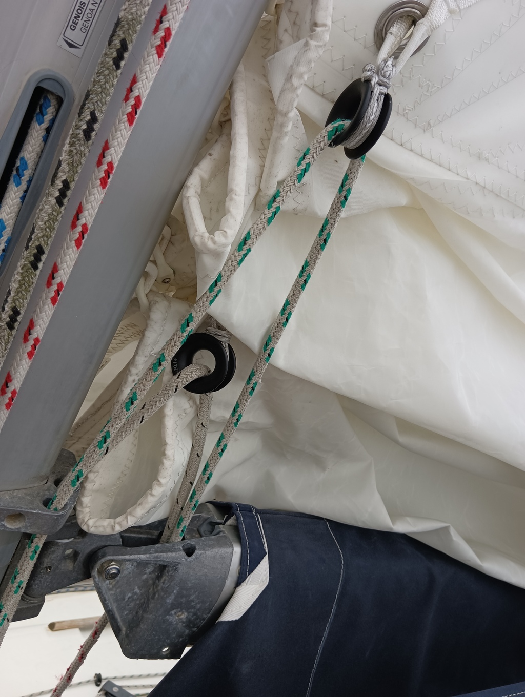 MacJL:Après lecture de tout vos commentaires, je pense que c’est mon problème principal : la bosse qui passe a travers la voile.Je vais essayer de positionner un anneau à friction avec une garcette pour voir si cela se passe mieux.Et si c’est concluant, je verrais si j’y installe une poulie... ou pas ! Car je me dis aussi que les anneaux seront plus léger, avec moins de chances d’abîmer la voile avec des angles saillants. ·le 11 déc. 23:22