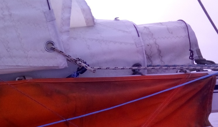 Autre écart: j'ai pas le systeme de rail coulissant, je suis obligé de sortir trois coulisseaux au premier ris.