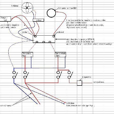 J'ai rencontré par hasard ce matin un installateur d'électricité sur camping car qui m'a fait un schéma.Je pourrai aussi le faire passer.