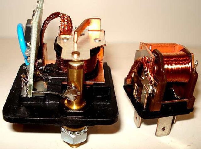Sur la photo, à droite un relais type automobile donné pour 40 A, c'est ce qu'on trouve dans les coupleurs Scheiber. (j'en ai autopsié un)