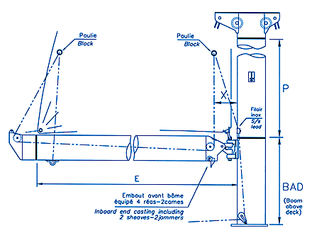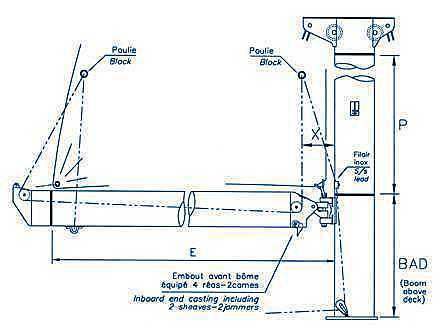 Après discussion avec le gréeur, j'ai fait percer deux lumières au dessus de la ferrure de bôme, ce qui permettait le passage des bosses des deux premiers ris selon la méthode sparcraft.