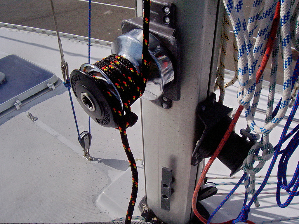Comme les années se font de plus en plus sentir, j'ai viré le winch N° 6 et l'ai remplcé par un ST 16. Coséquence: meilleur étarquage de la drisse et j'ai une main (de plus :mdr:) pour me tenir.