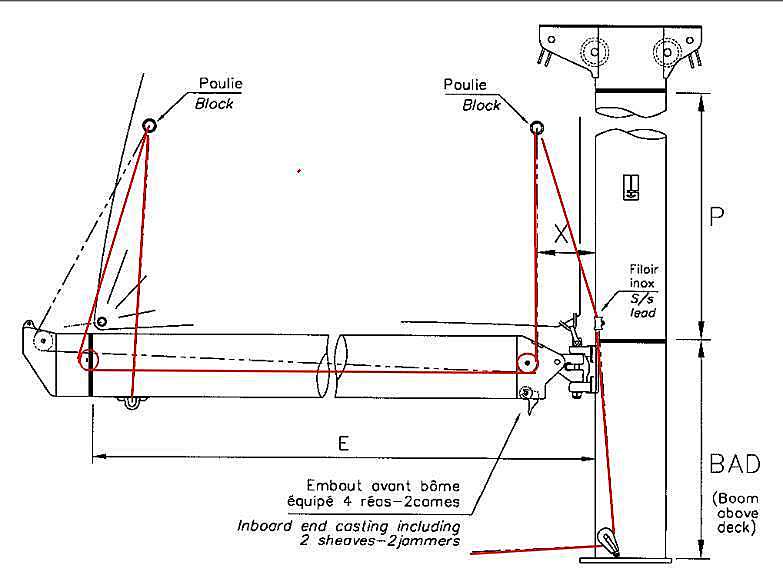 A l'arrière, l'arrondi de la bôme faisait que les bosses en tensions avaient un mauvais angles et bouffaient les réas.