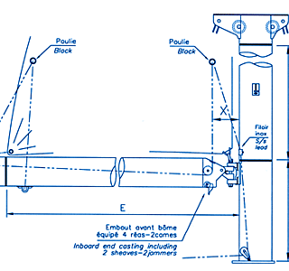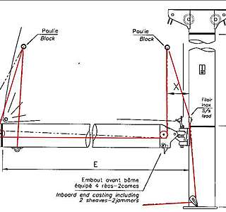 Comme la ferrure de bôme n'était pas assez large pour un troisième trou, le bas ris passait par des réas extérieurs. Pas tout à fait idéal, mais très satisfaisant quand même. Comme, le 3è ris servait peu souvent, les risque d'usure sur les réas extétieurs était limités.
