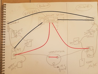 Alors je vais installer (correctement, Schéma Mamita) mon seul BMV, sur tribord, et voir venir. Comme je vais avoir la même configuration sur les deux coques, à peu de chose près, ça me permettra d'affiner ma perception de l'état de charge des batteries.