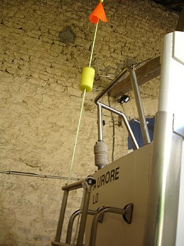 Bonjour à tous j'ai fabriqué la perche avec un pare battage percé petit modele, une latte ronde diam 10 mm . A la base percer la latte l'enfiler dans un tube alu L 150 Diam 30 mm, couler du plomb et pour le haut un fanion orange de chez USIP et ca marche !! la fixer a la bouée couronne avec un feu a eclat Cdlt AD