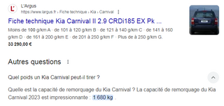 Donc là pour l'ensemble Kia Carnival tractant le Maxus 24 c'est au minimum 300 kg de trop , en réel poids mesuré certainement plus.