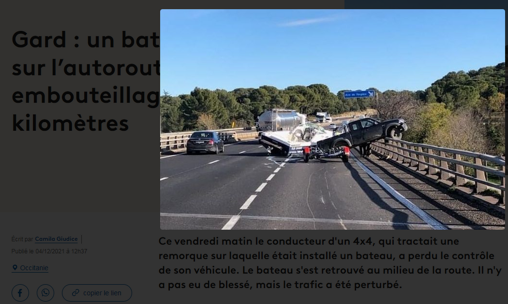 En photos les accidents avec remorque, cause météo ou conduite imprudente peuvent arriver malgré un ensemble apparemment