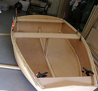 J'ai construit une annexe CP époxy qui faisait moins de 30kg finie, qui marchait à la rame et godille grace à une fausse quille.